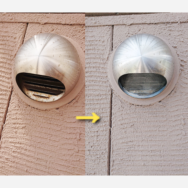 コウモリは換気扇の中や天井裏に巣を作ることが多く、それらを糞まみれにします。追い出し施工を行った後、糞の除去・殺菌消毒・寄生虫駆除を行い、侵入口を閉塞します。